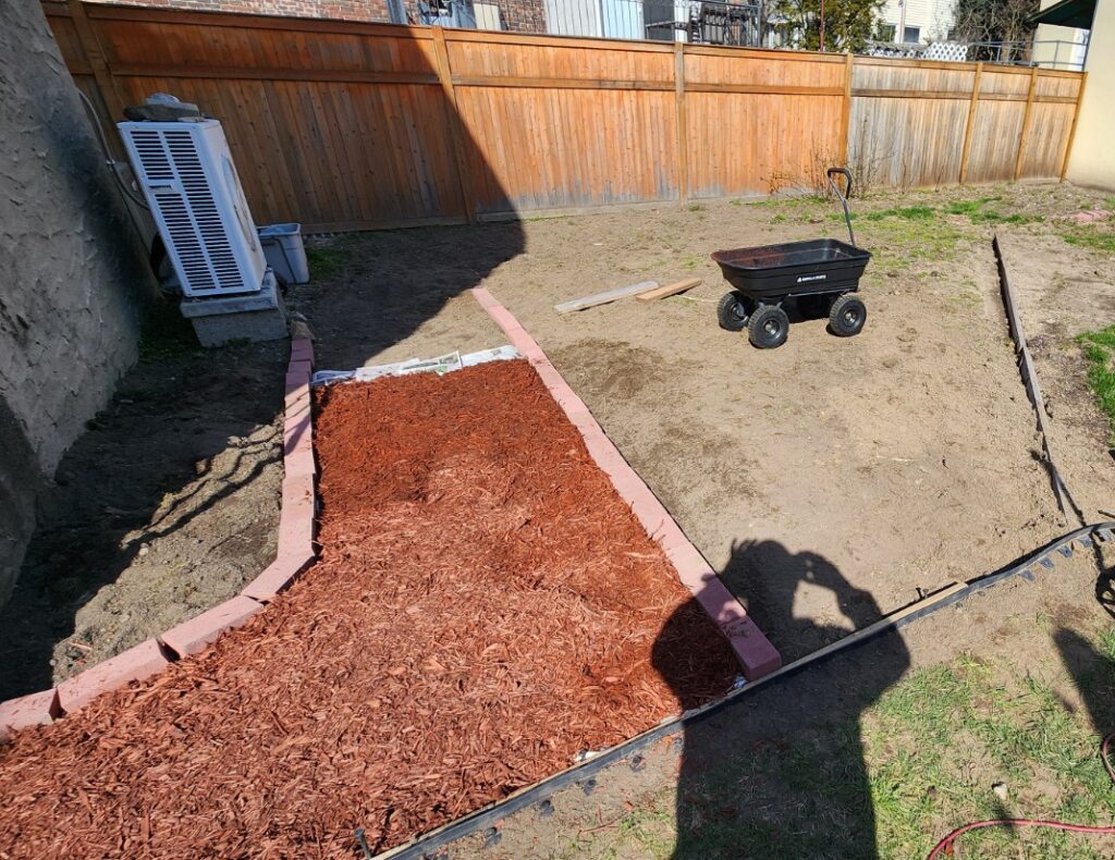 I started to create a wood chip path in my backyard garden. I had been planning to do this for